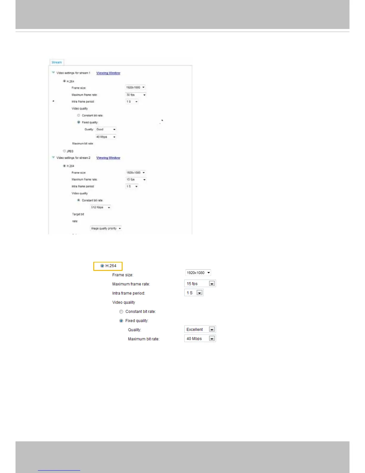 a higher bit rate for live viewing on web browsers. Note that a larger frame size takes up more