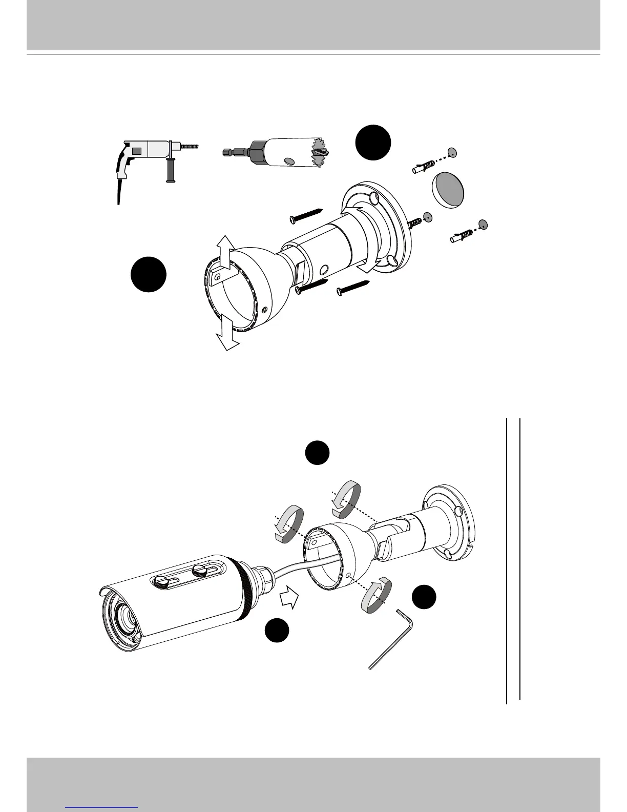 6. Drill holes on the wall for securing the bracket and passing the Ethernet cable. Secure the