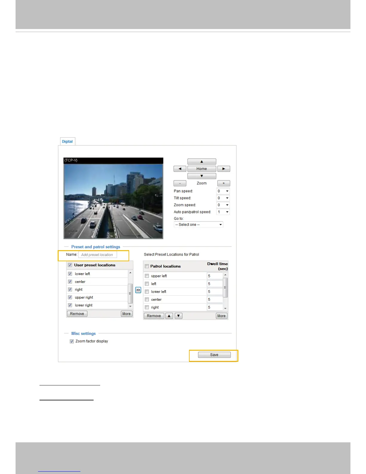 When completed with the e-PTZ settings, click Save to enable the settings on this page.