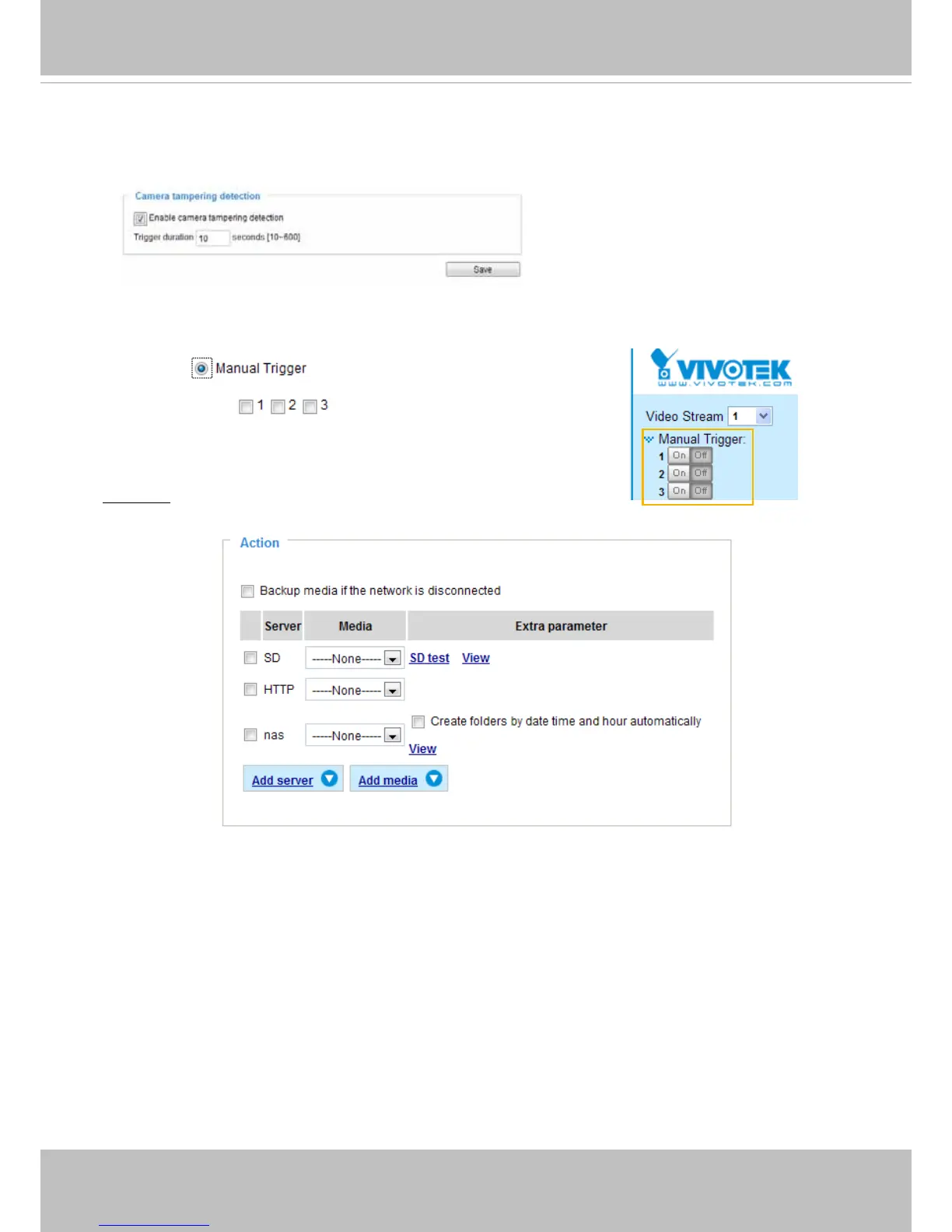 This option allows the Network Camera to trigger when the camera detects that is is being tampered