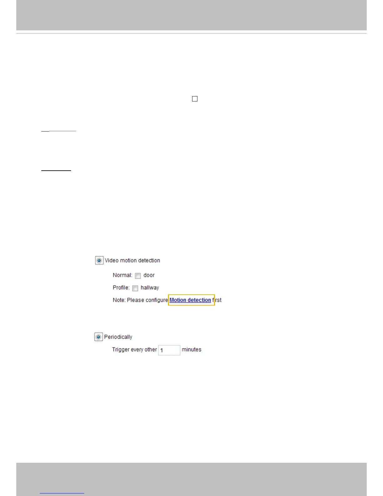 This option allows the Network Camera to trigger periodically for every other dened minute. Up to 999