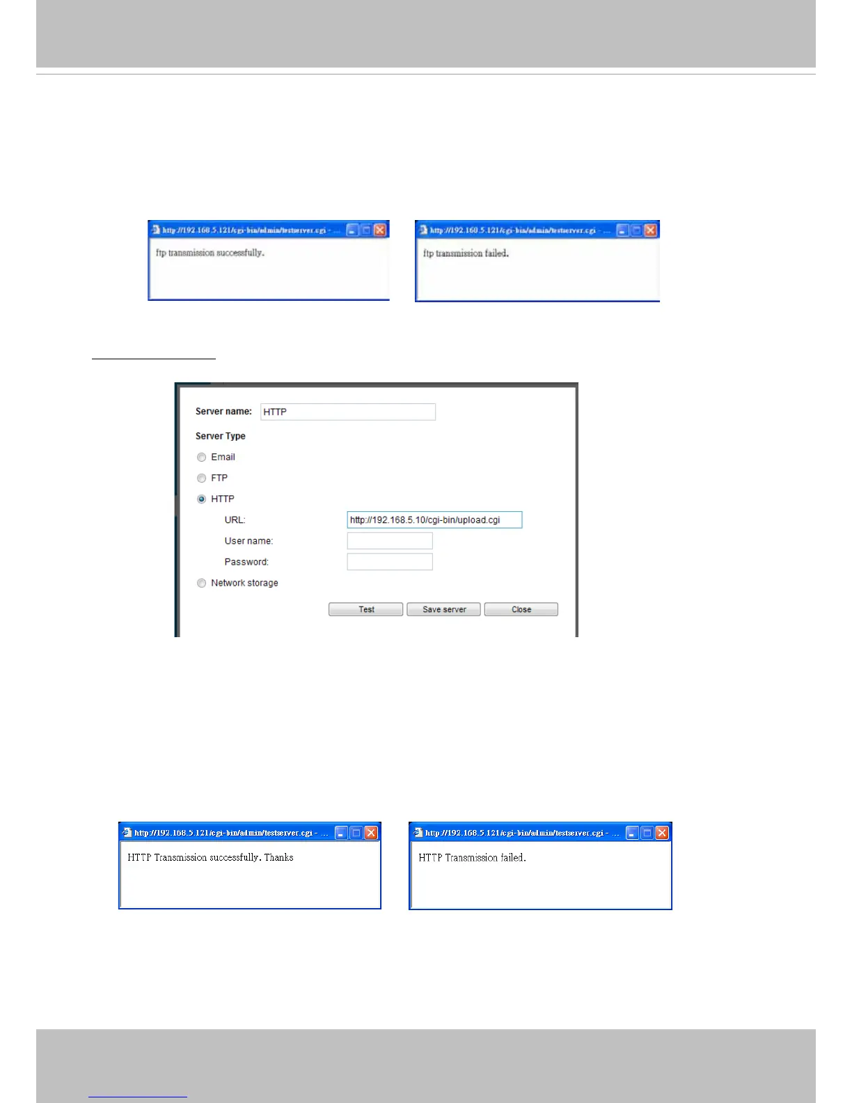 To verify if the FTP settings are correctly congured, click Test. The result will be shown in a pop-up