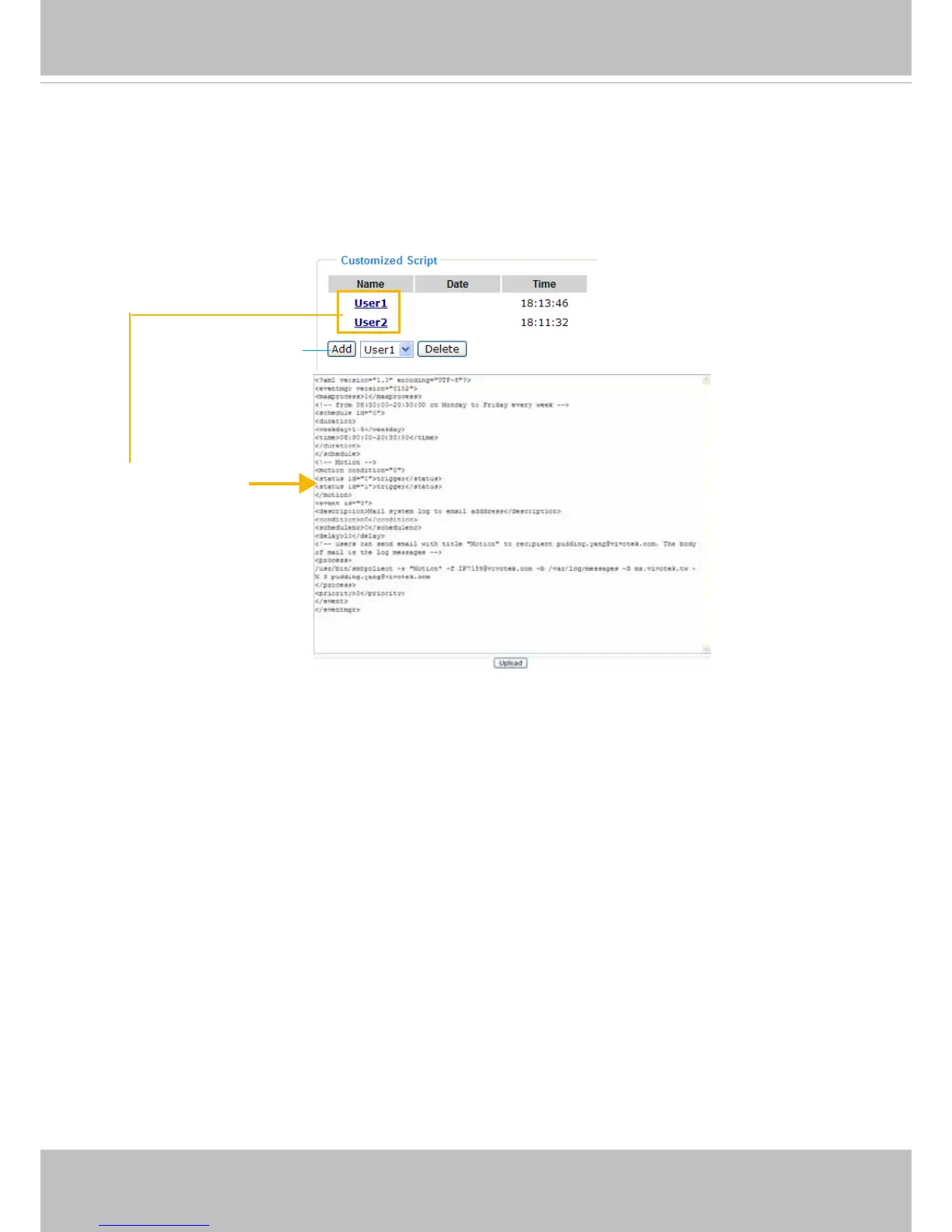 This function allows you to upload a sample script (.xml le) to the camera, which will save your time on