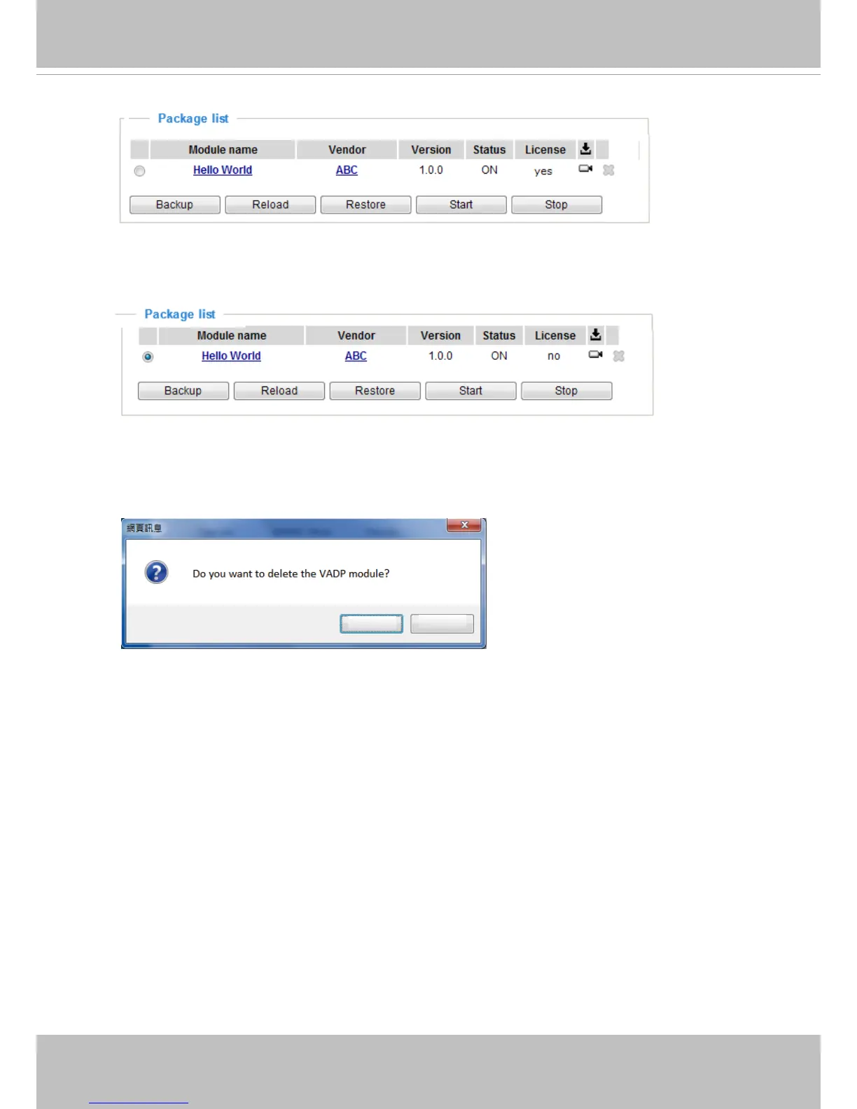 Stop button. By then the module status will become OFF, and the X button will appear at