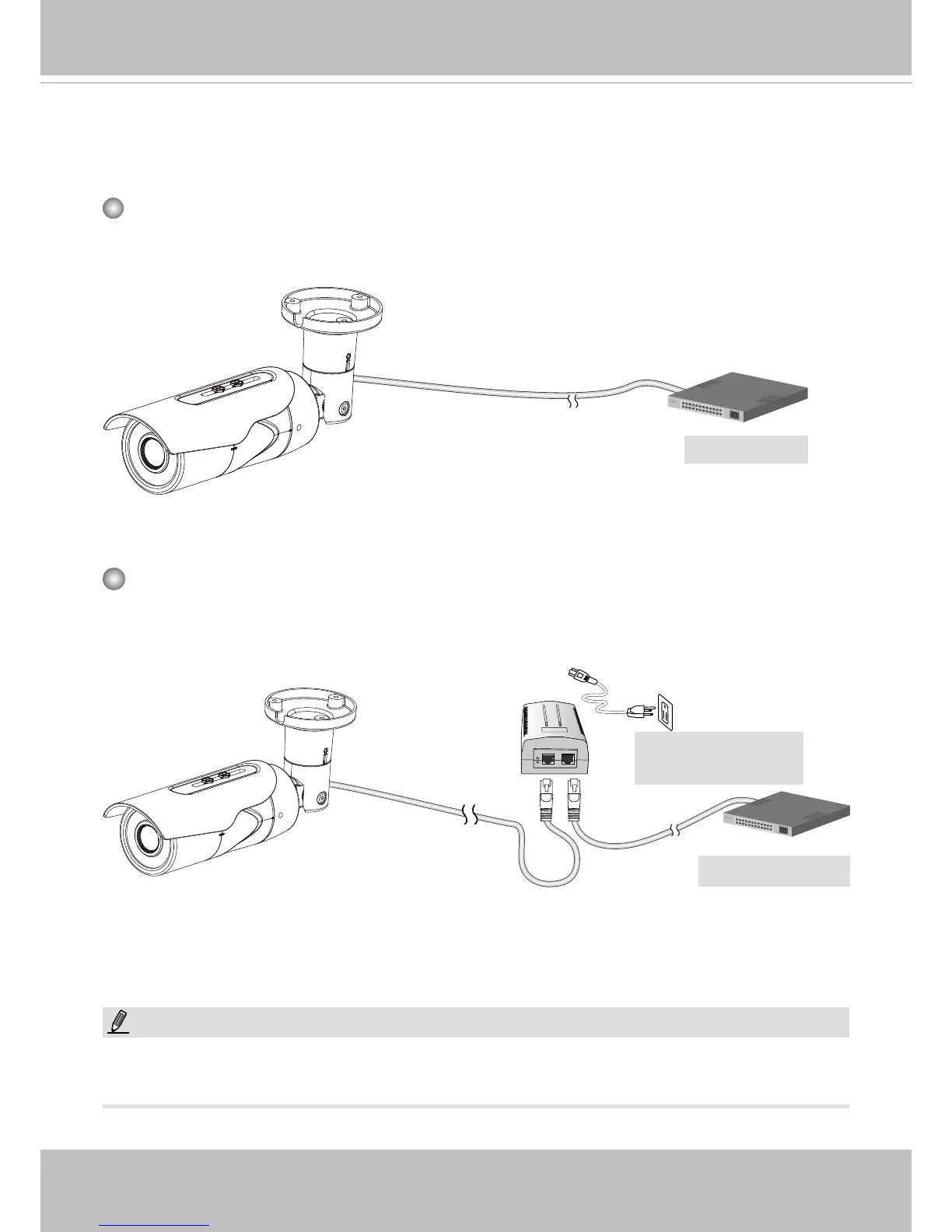 gle Ethernet cable. Follow the below illustration to connect the Network Camera to a PoE-