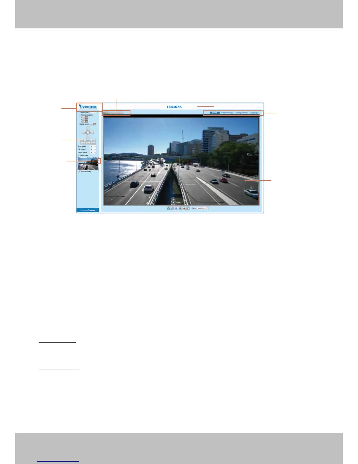 VIVOTEK INC. Logo, Host Name, Camera Control Area, Configuration Area, Menu, and Live