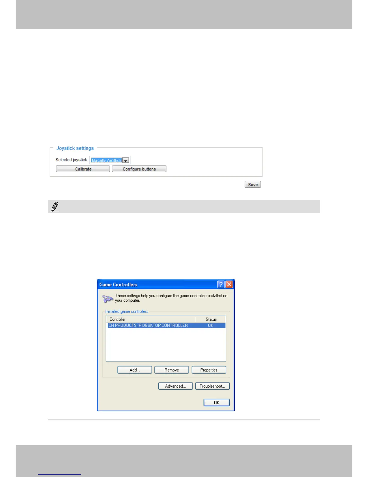 • The joystick will appear in the Game Controllers list in the Windows Control panel. If you want to