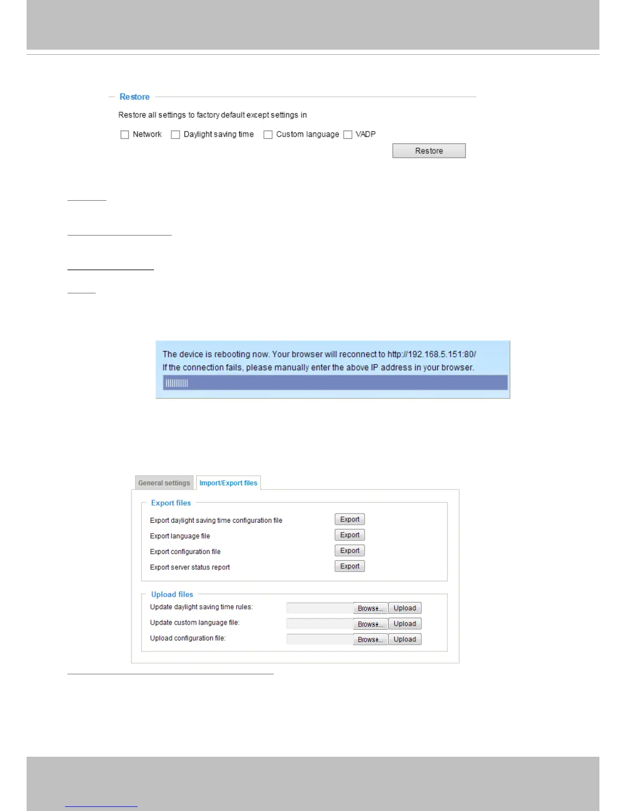 This feature allows you to Export / Update daylight saving time rules, custom language le, conguration