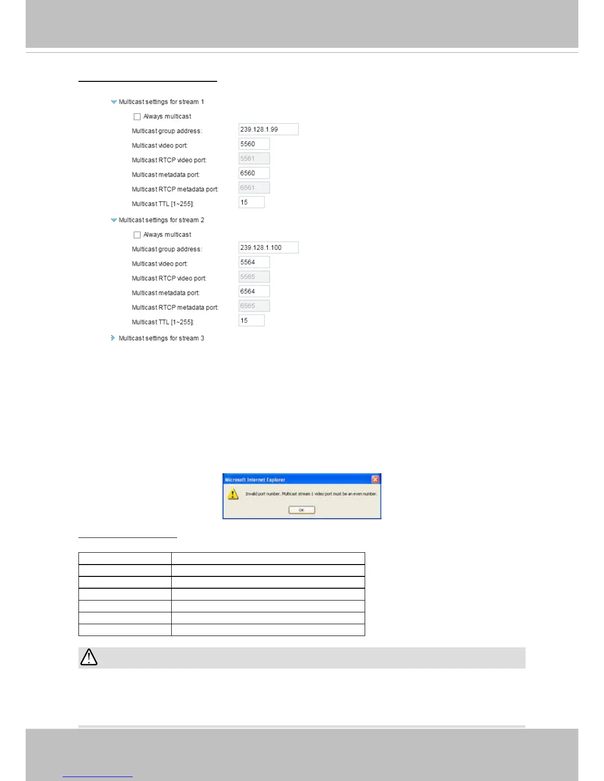 If the multicast RTP video ports are incorrectly assigned, the following warning message will be