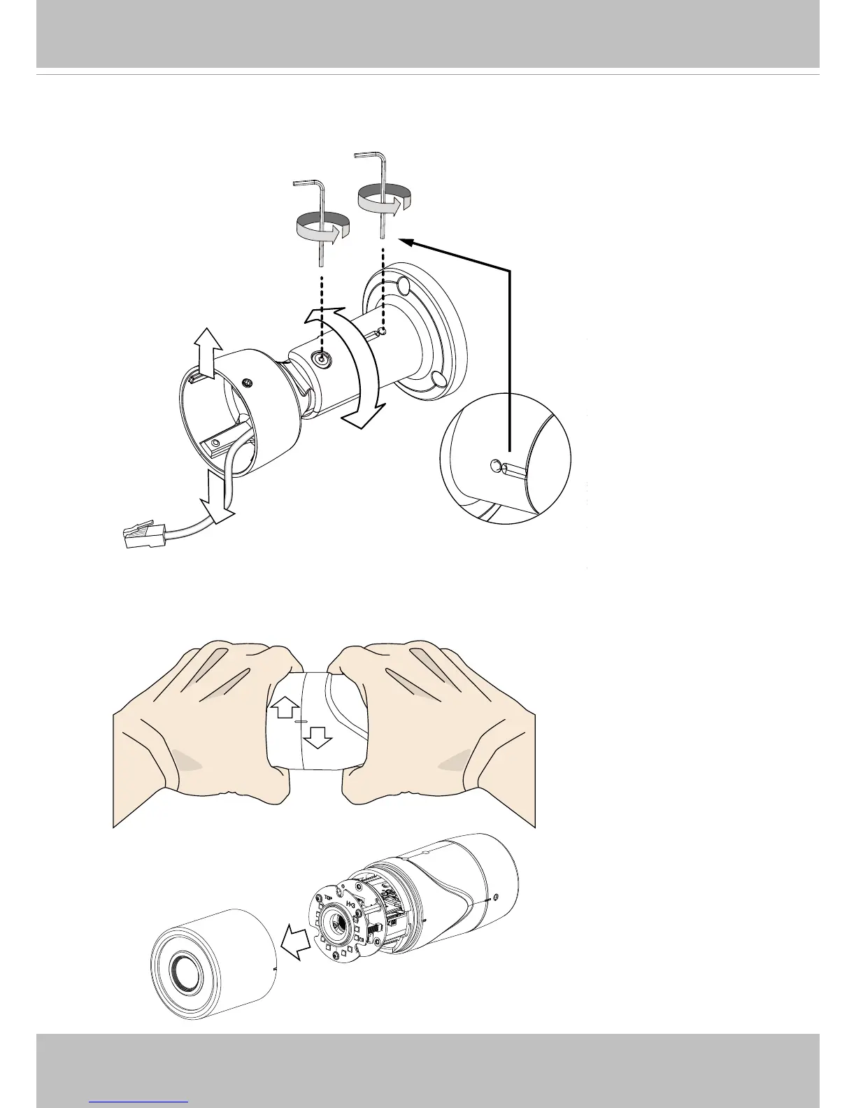 6. Open the camera canister by holding both ends of the camera rmly and turn toward