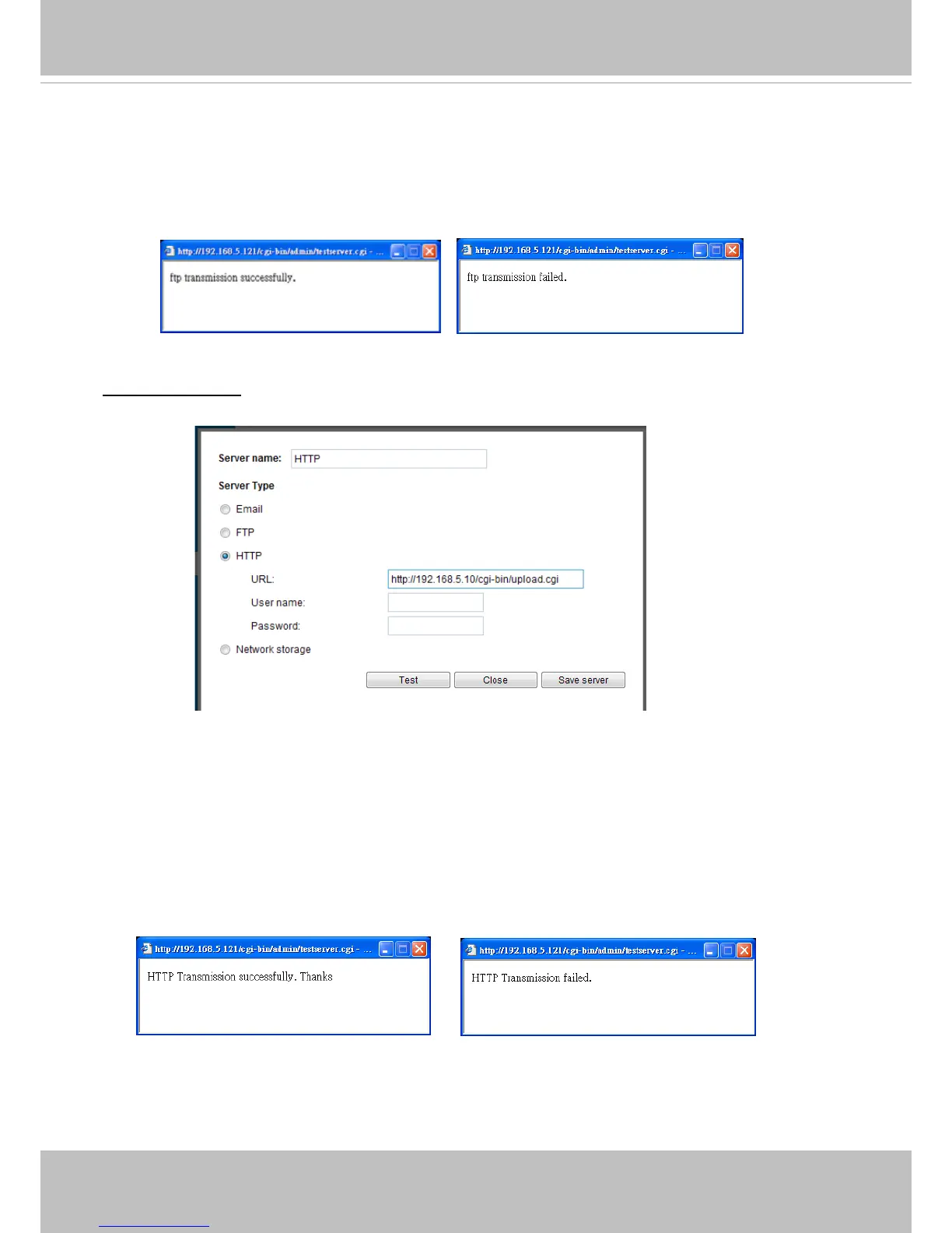 To verify if the FTP settings are correctly congured, click Test. The result will be shown in a pop-up
