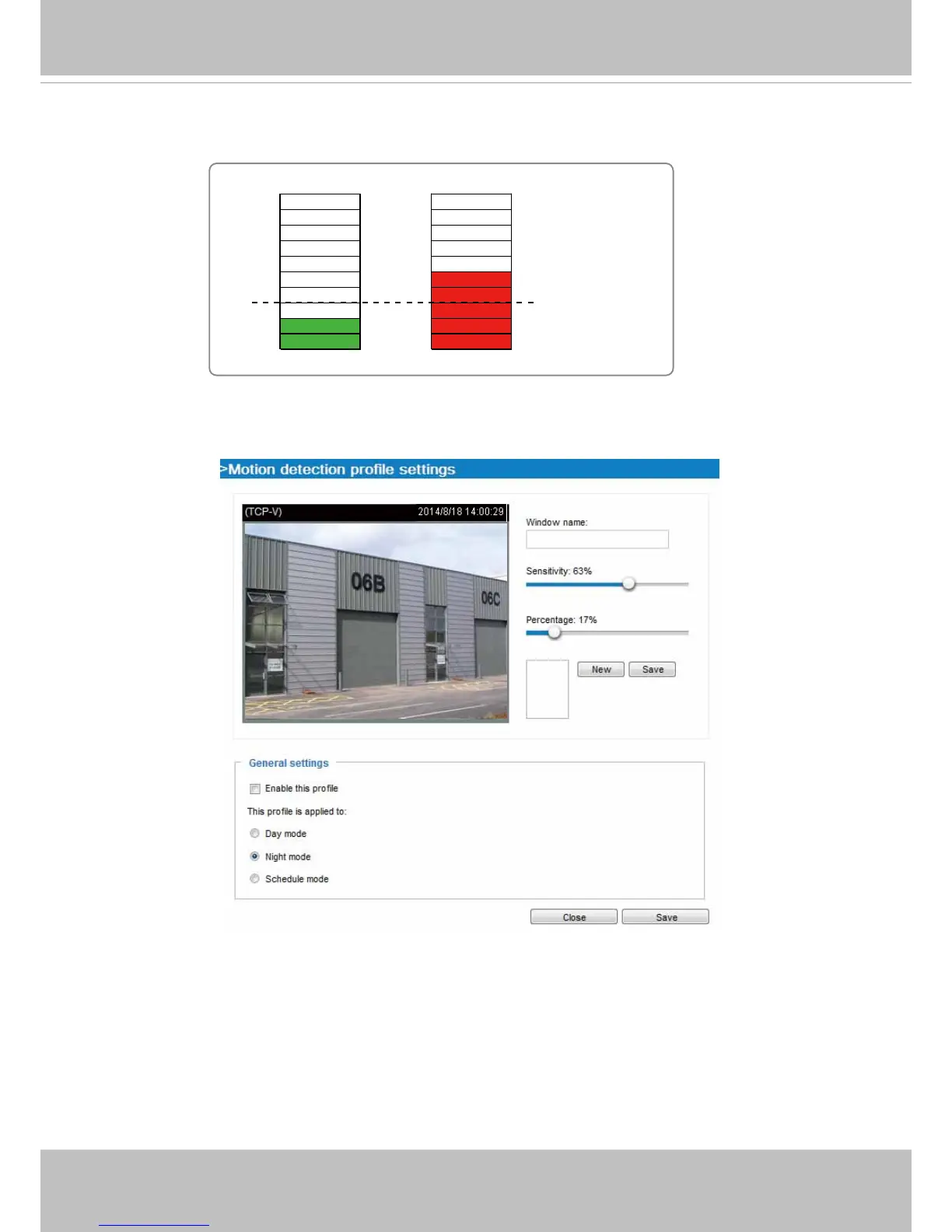 A green bar indicates that even though motions have been detected, the event has not been triggered