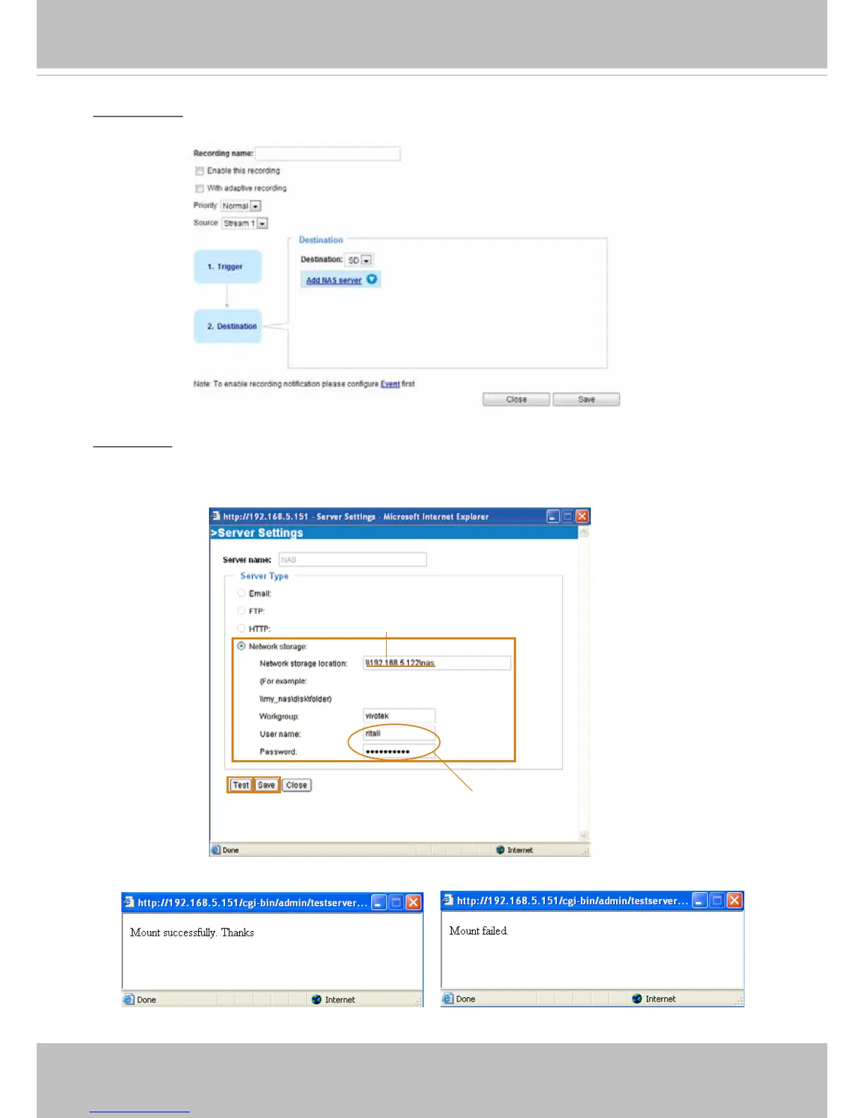 You can select the SD card or network storage (NAS) as the destination of the recording tasks.