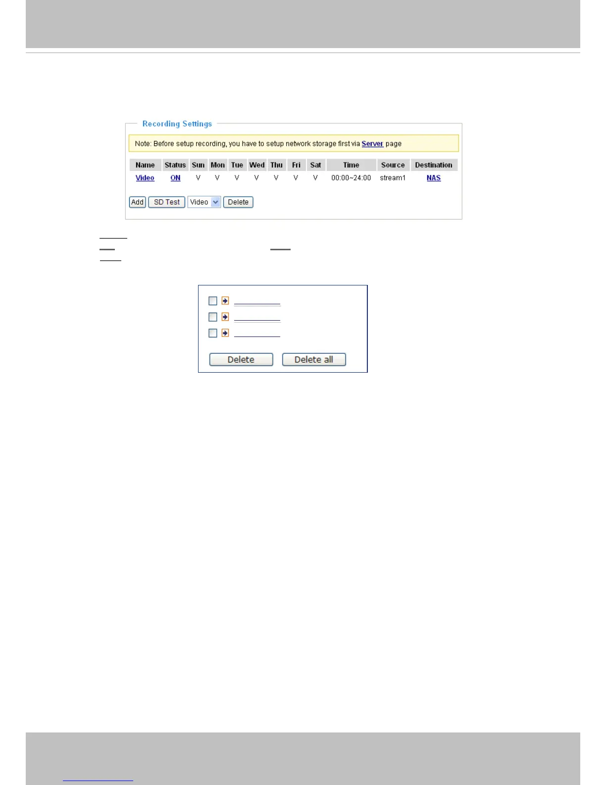■ Click NAS (Destination): Opens the le list of recordings as shown below. For more information about