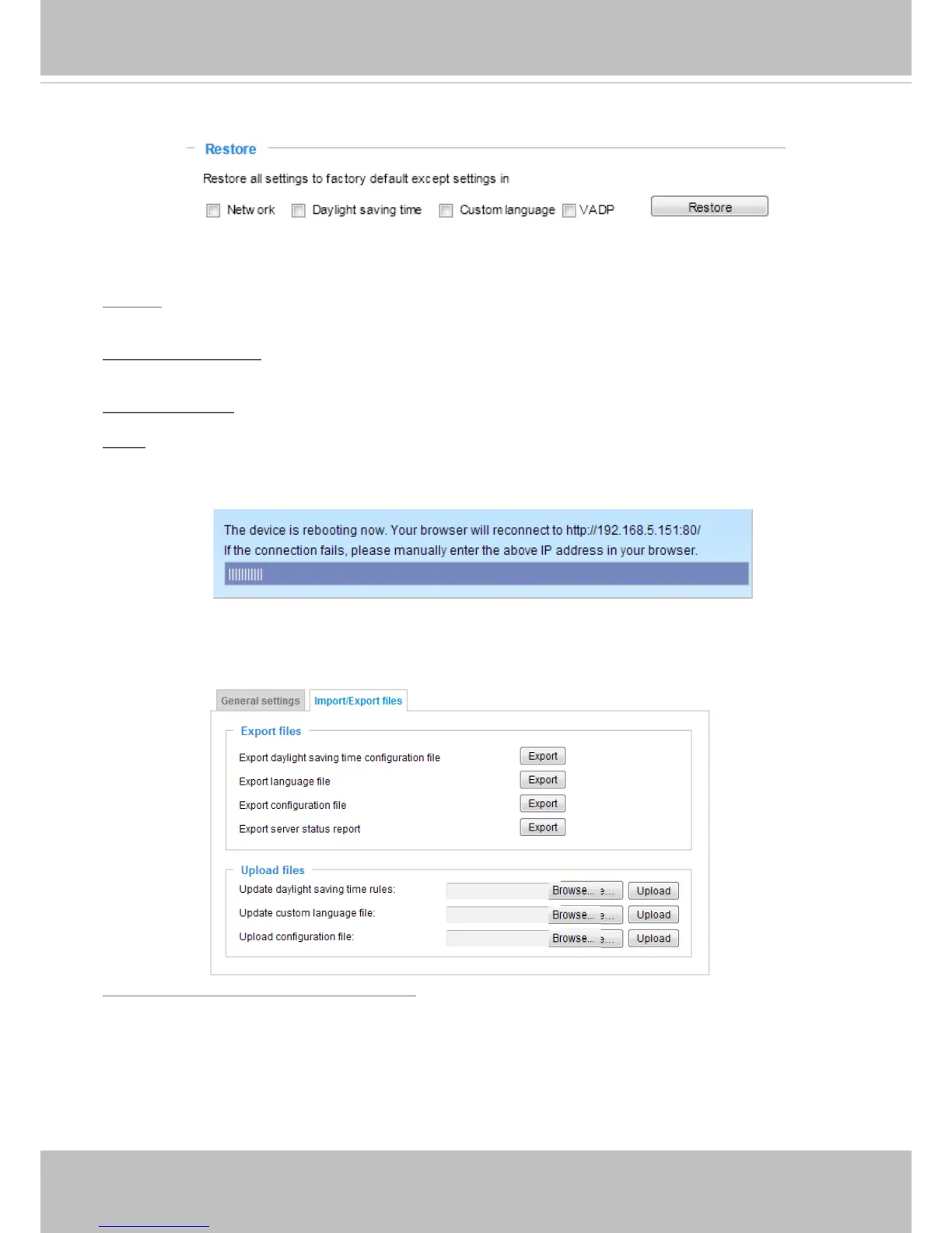 This feature allows you to Export / Update daylight saving time rules, custom language le, conguration