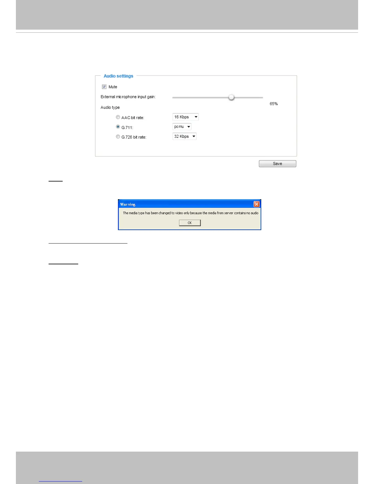 Mute: Select this option to disable audio transmission from the Network Camera to all clients. Note