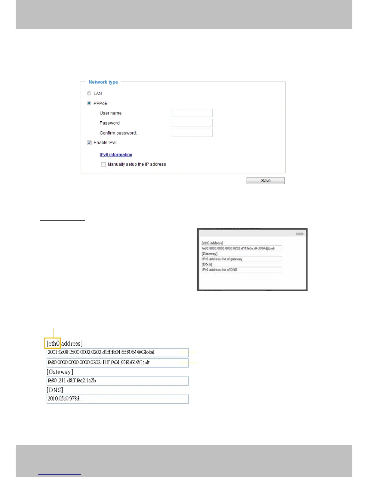IPv6 Information: Click this button to obtain the IPv6 information as shown below. You may need to click