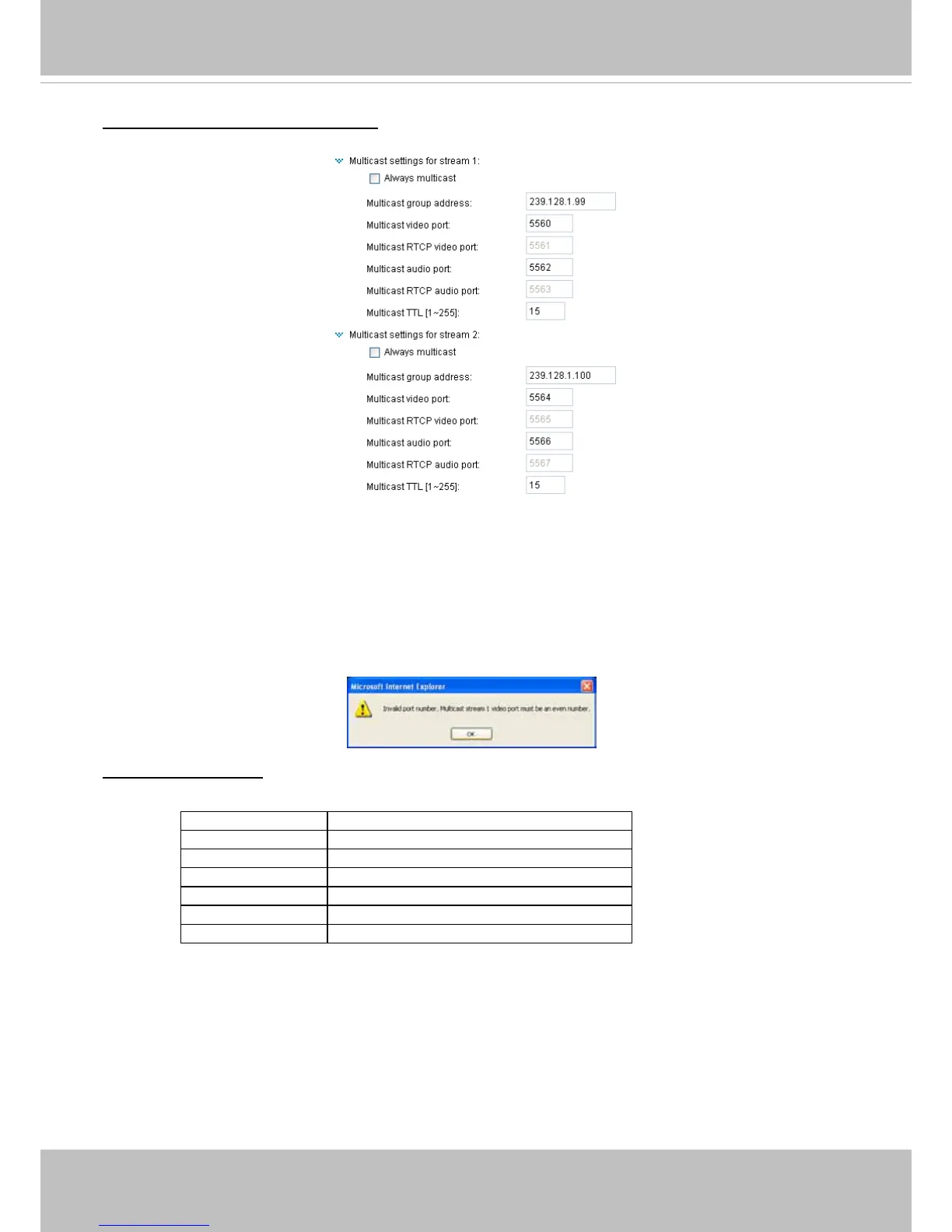 If the multicast RTP video ports are incorrectly assigned, the following warning message will be