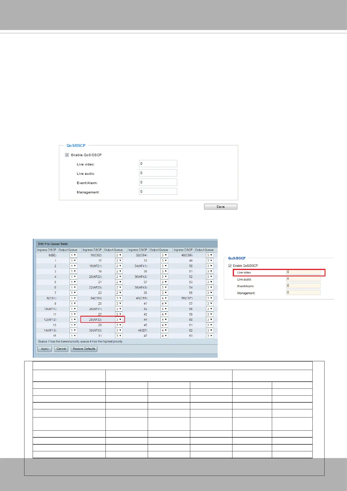 Below are the setting options of DSCP (DiffServ Codepoint). Specify the DSCP value for each