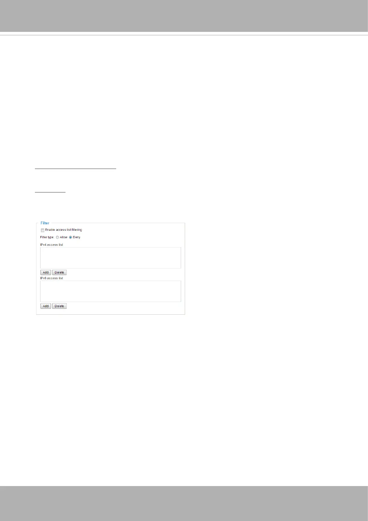 whose IP addresses are on the Access List below can access the Network Camera, and the others