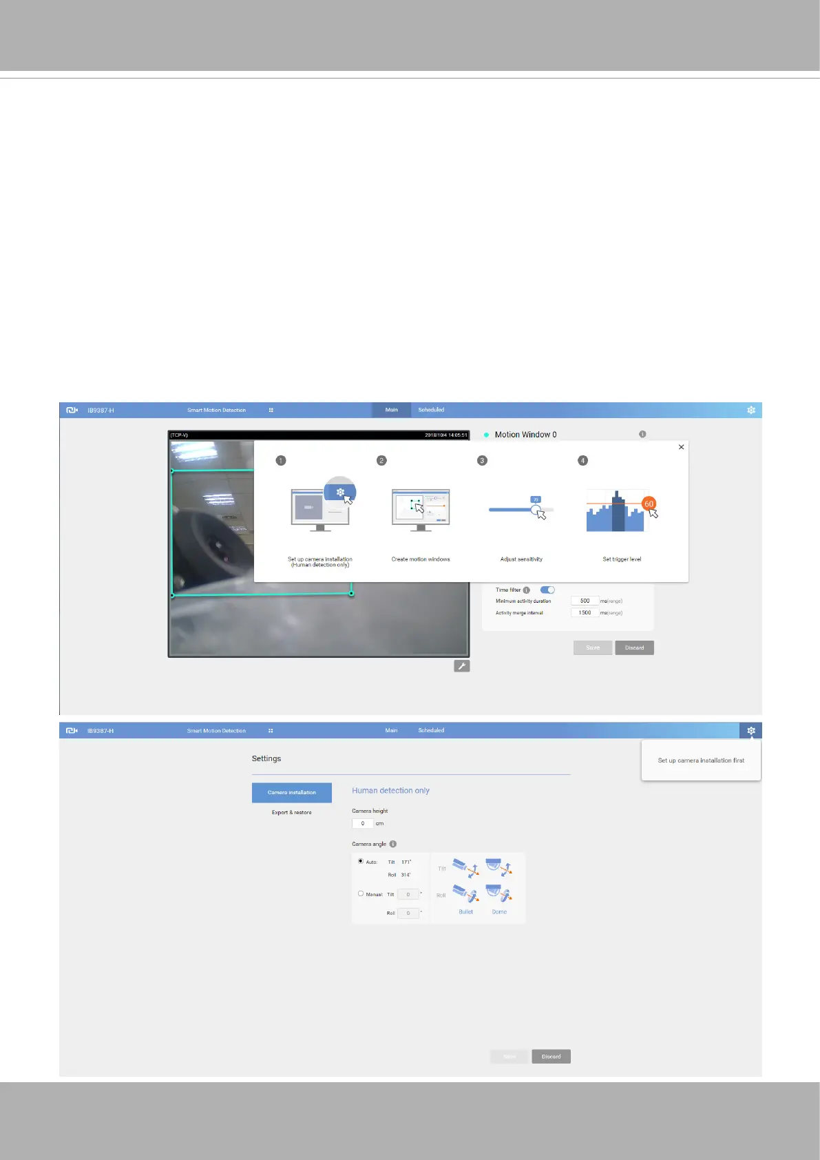 The camera comes with a Smart Motion Detection utility as its pre-loaded VCA package. Please