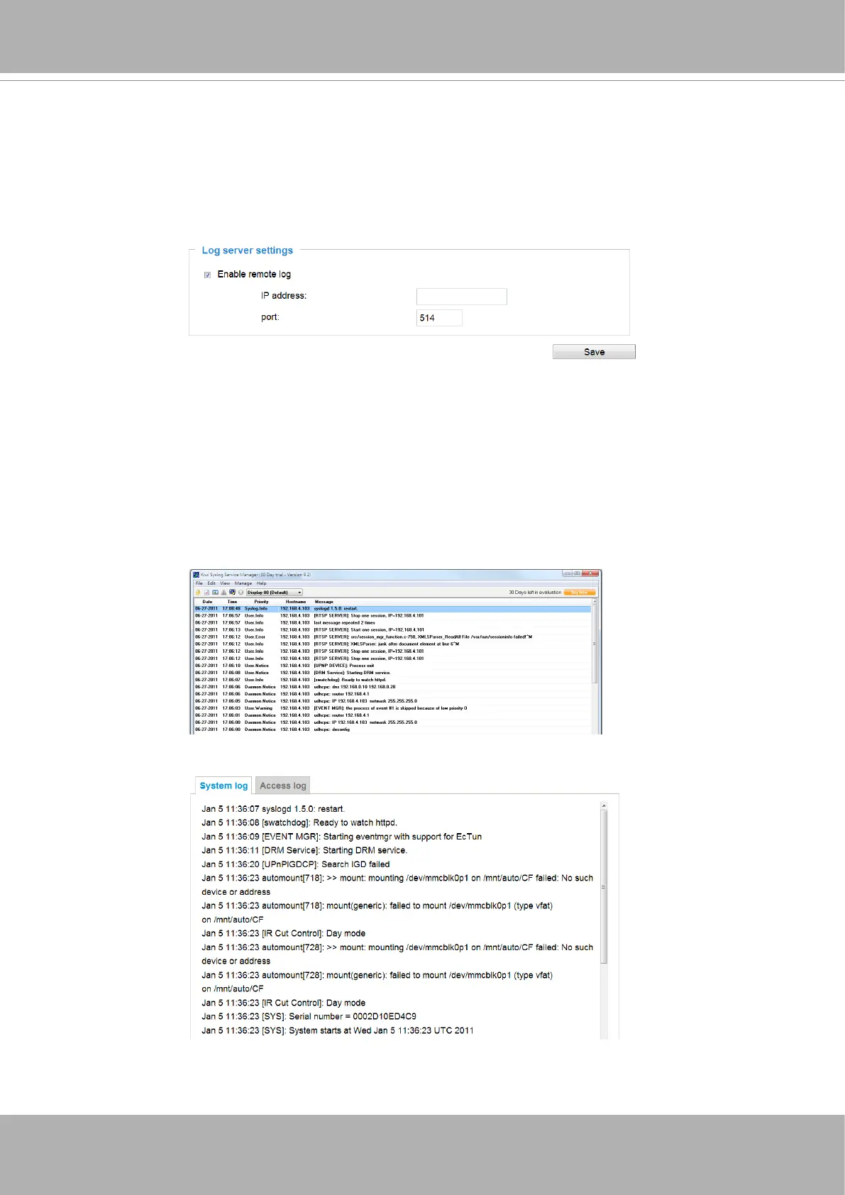 You can congure the Network Camera to send the system log le to a remote server as a log backup.