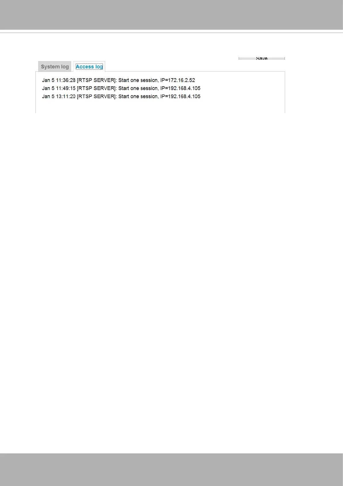 administrators) in a chronological order. The access log is stored in the Network Camera’s buffer