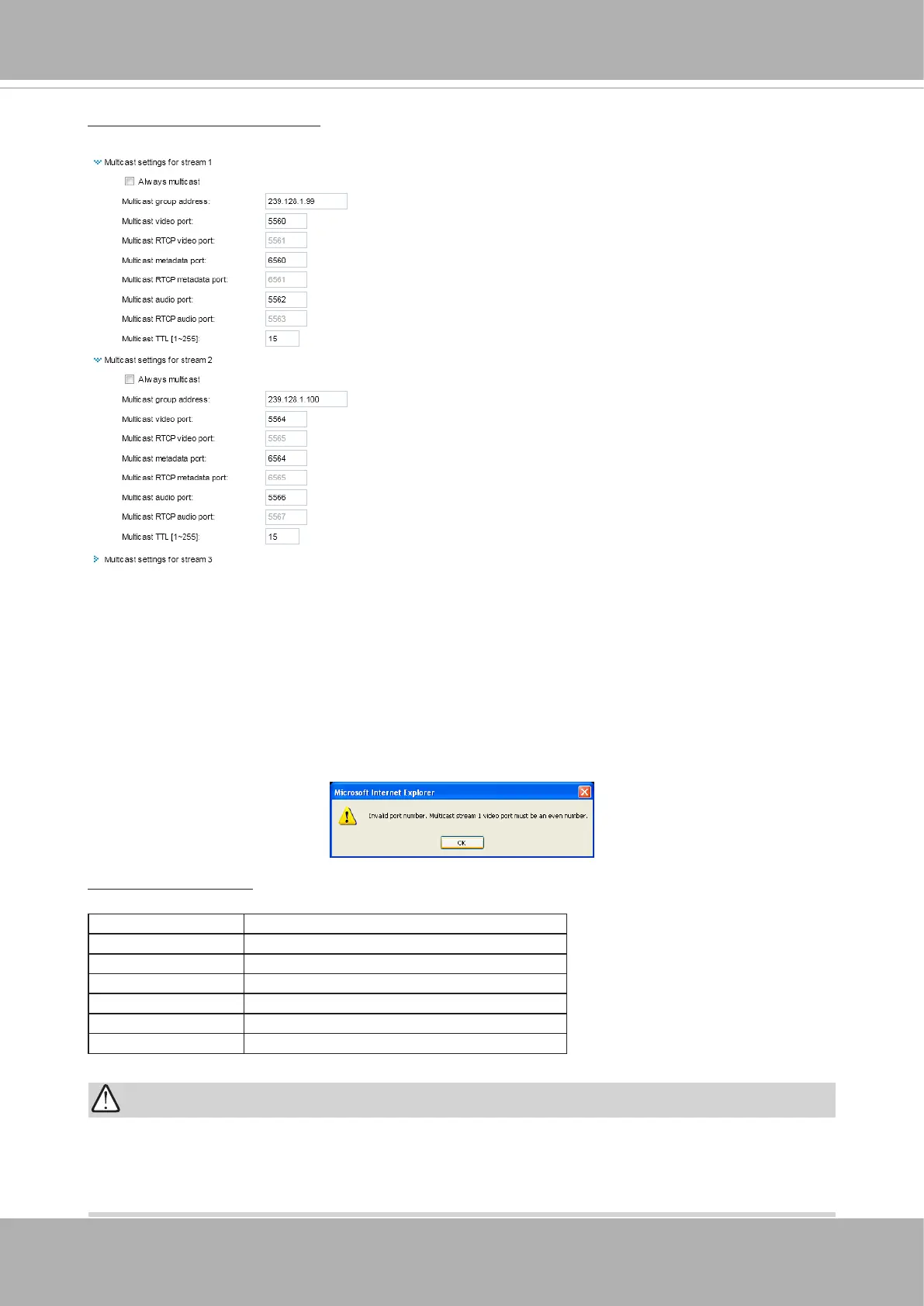 If the multicast RTP video ports are incorrectly assigned, the following warning message will be