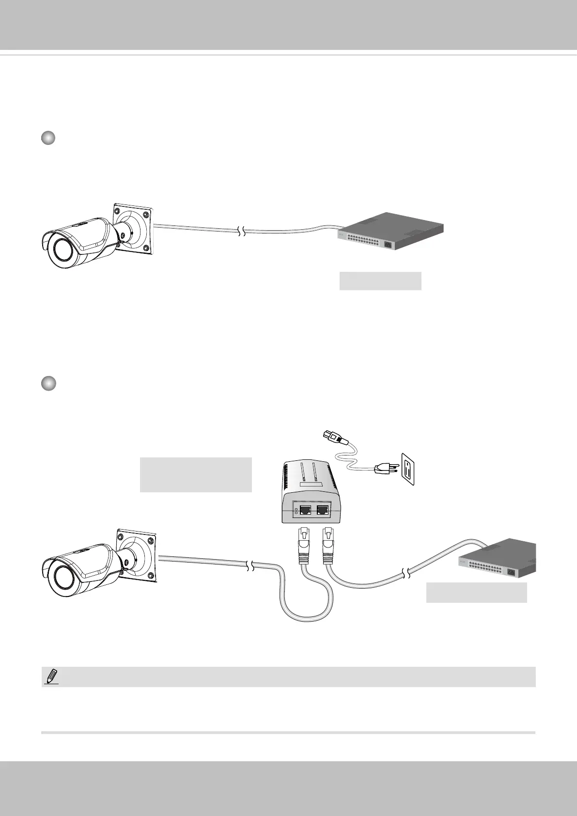 gle Ethernet cable. Follow the below illustration to connect the Network Camera to a PoE-