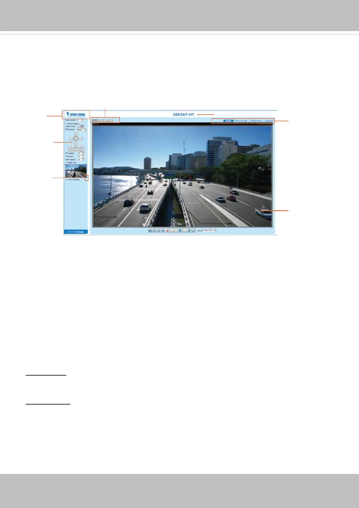 VIVOTEK INC. Logo, Host Name, Camera Control Area, Configuration Area, Menu, and Live