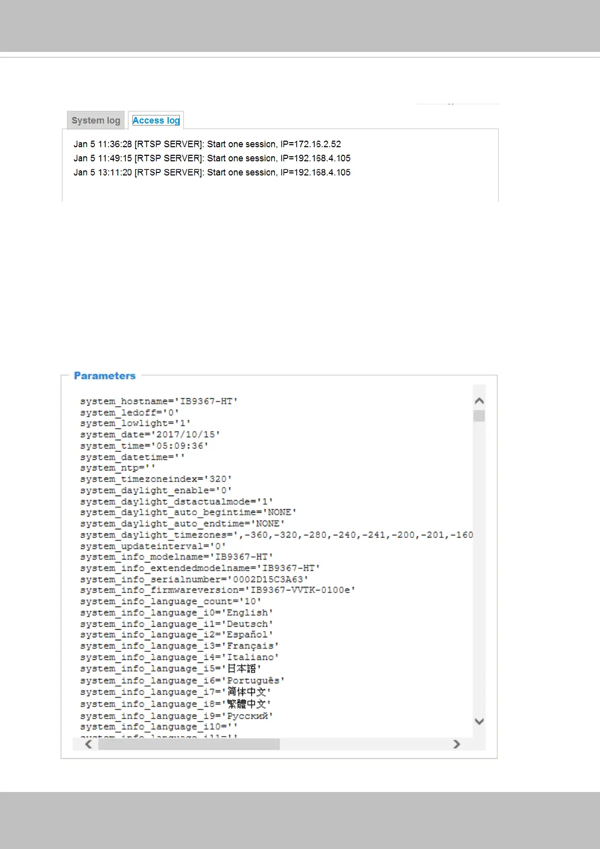 administrators) in a chronological order. The access log is stored in the Network Camera’s buffer