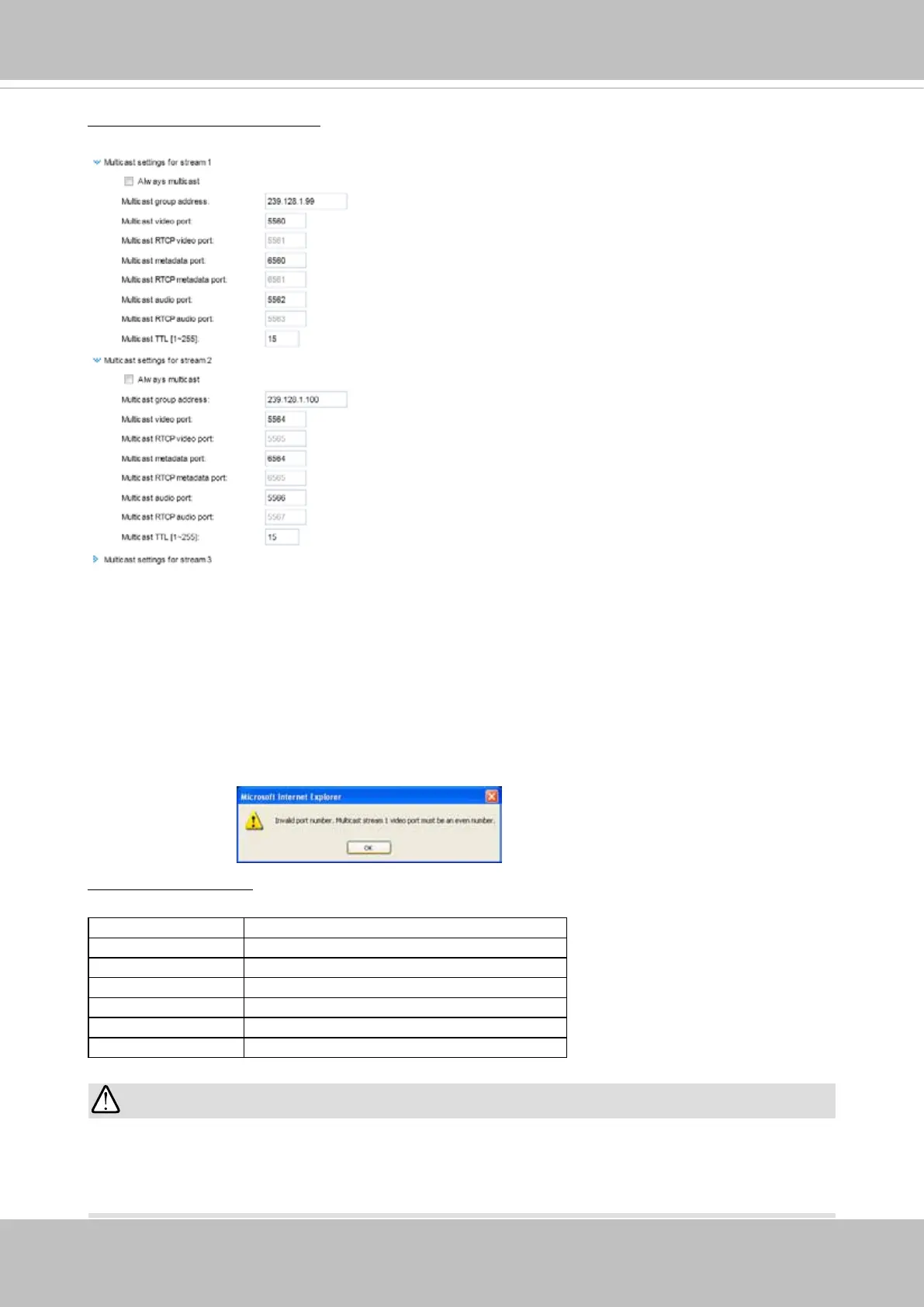 If the multicast RTP video ports are incorrectly assigned, the following warning message will be