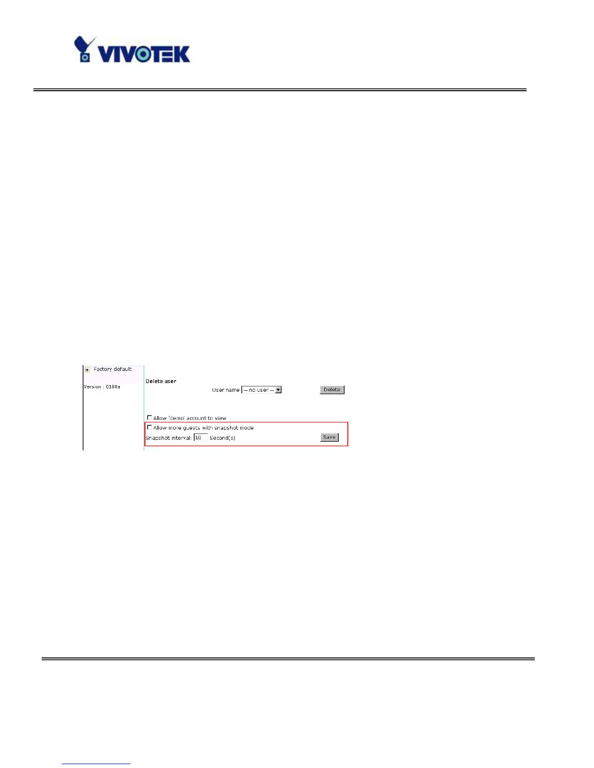 4. Set the snapshot interval to refresh the still image automatically. The longer the
