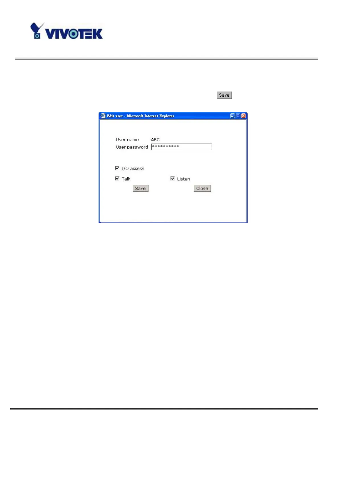 Vivotek IP6117 - Edit User