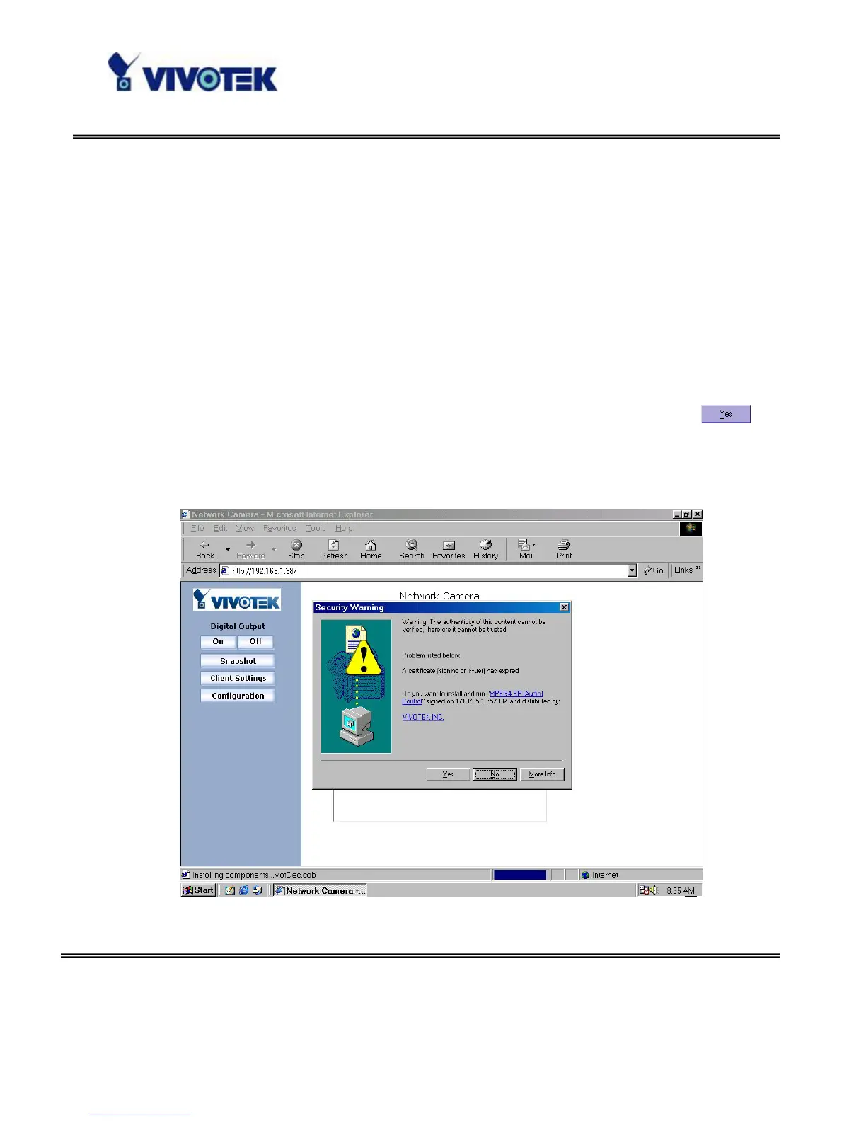 prompt for permission to install a new plug-in for the Network Camera after a period