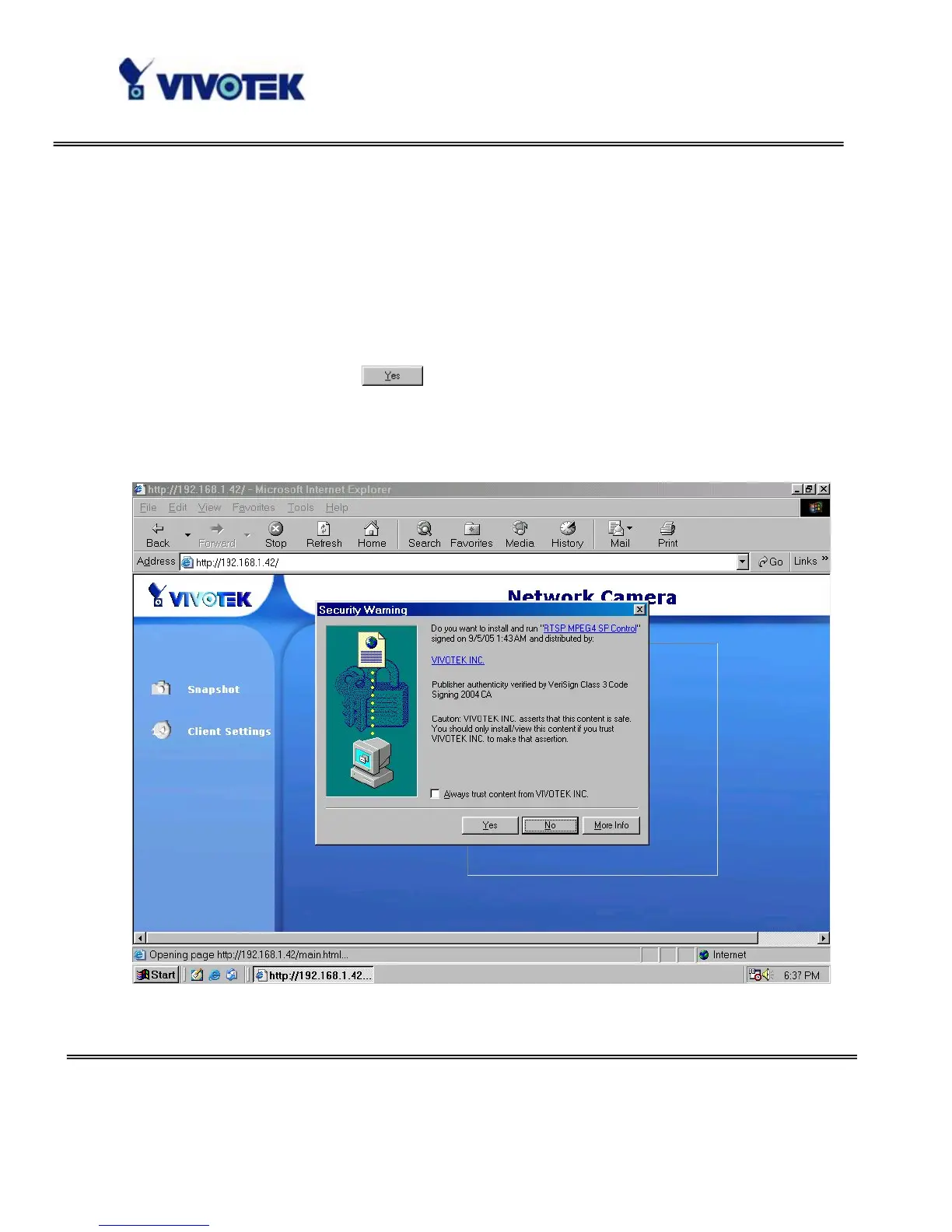 For the initial access to the Network Camera in Windows, the web browser may prompt