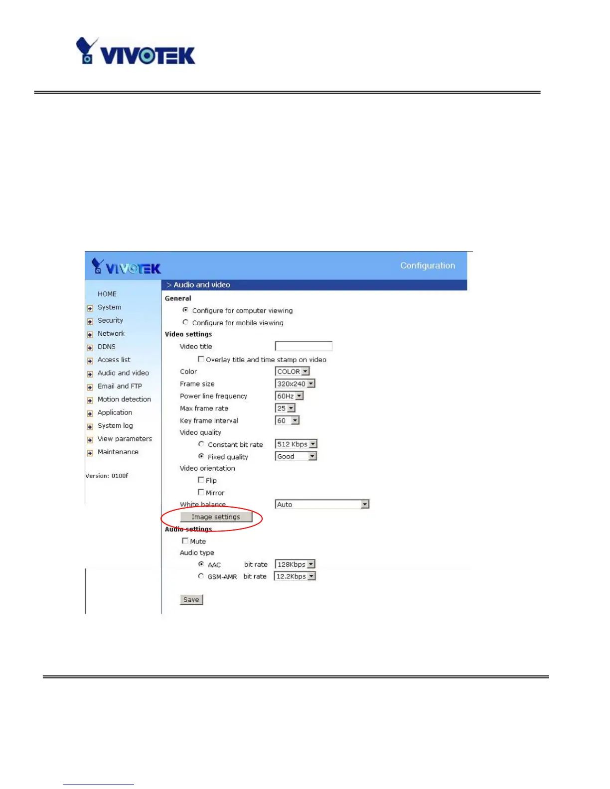 “Audio type” Select audio codec “AAC” or “GSM-AMR” and the bit rate