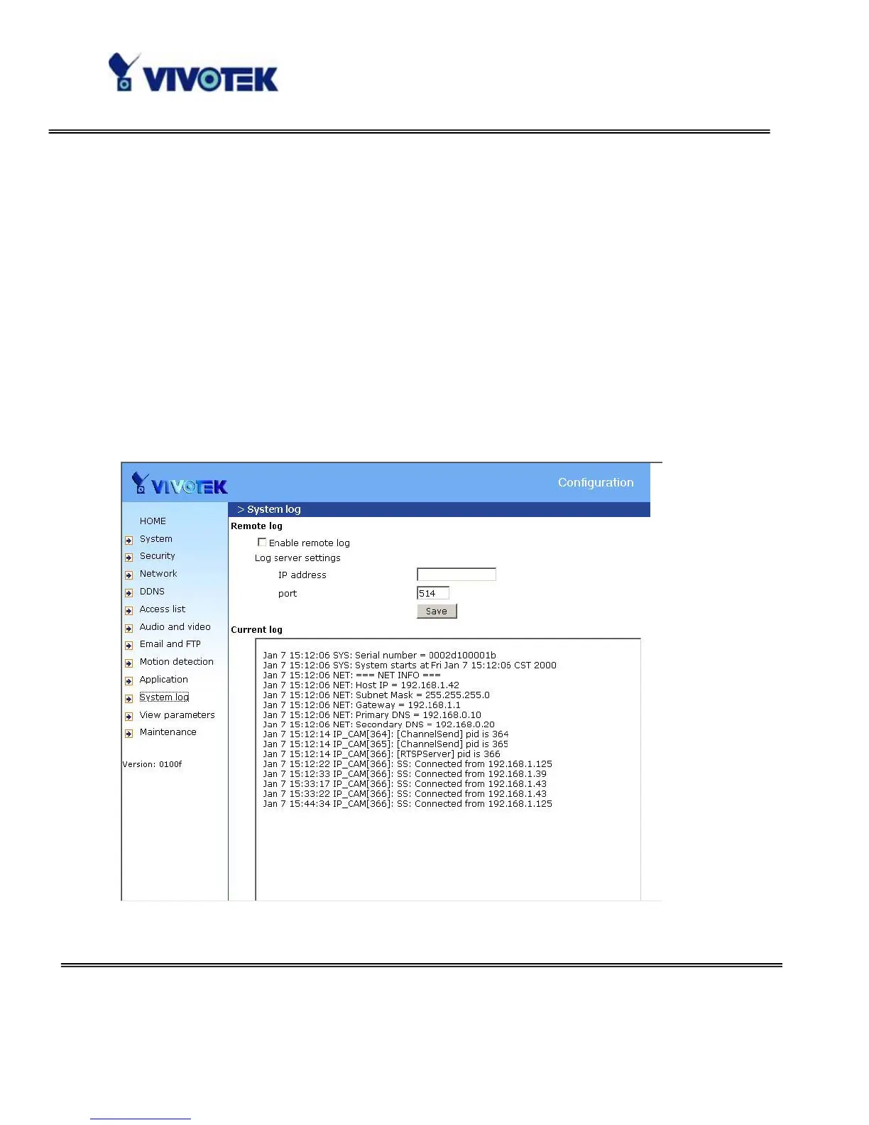 Check “Enable remote log” and input the “IP address” and “port” number of the