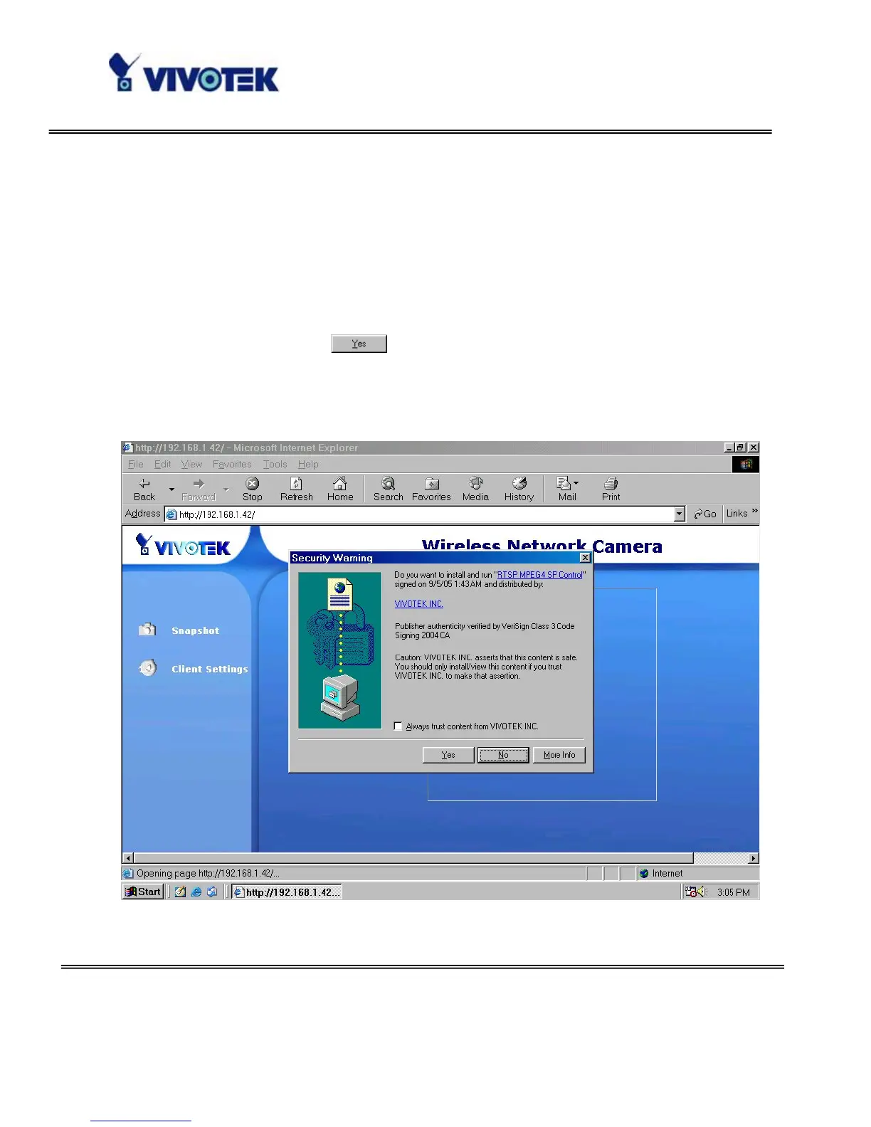 For the initial access to the Network Camera in Windows, the web browser may prompt