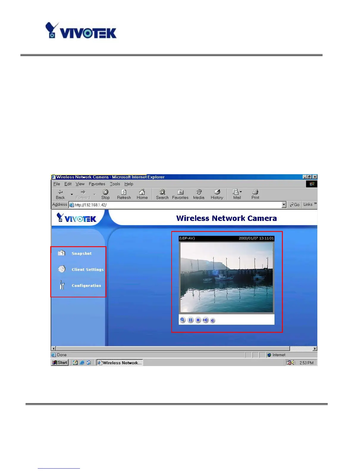 Vivotek IP7137 - Primary Users Capability; Main Screen with Camera View