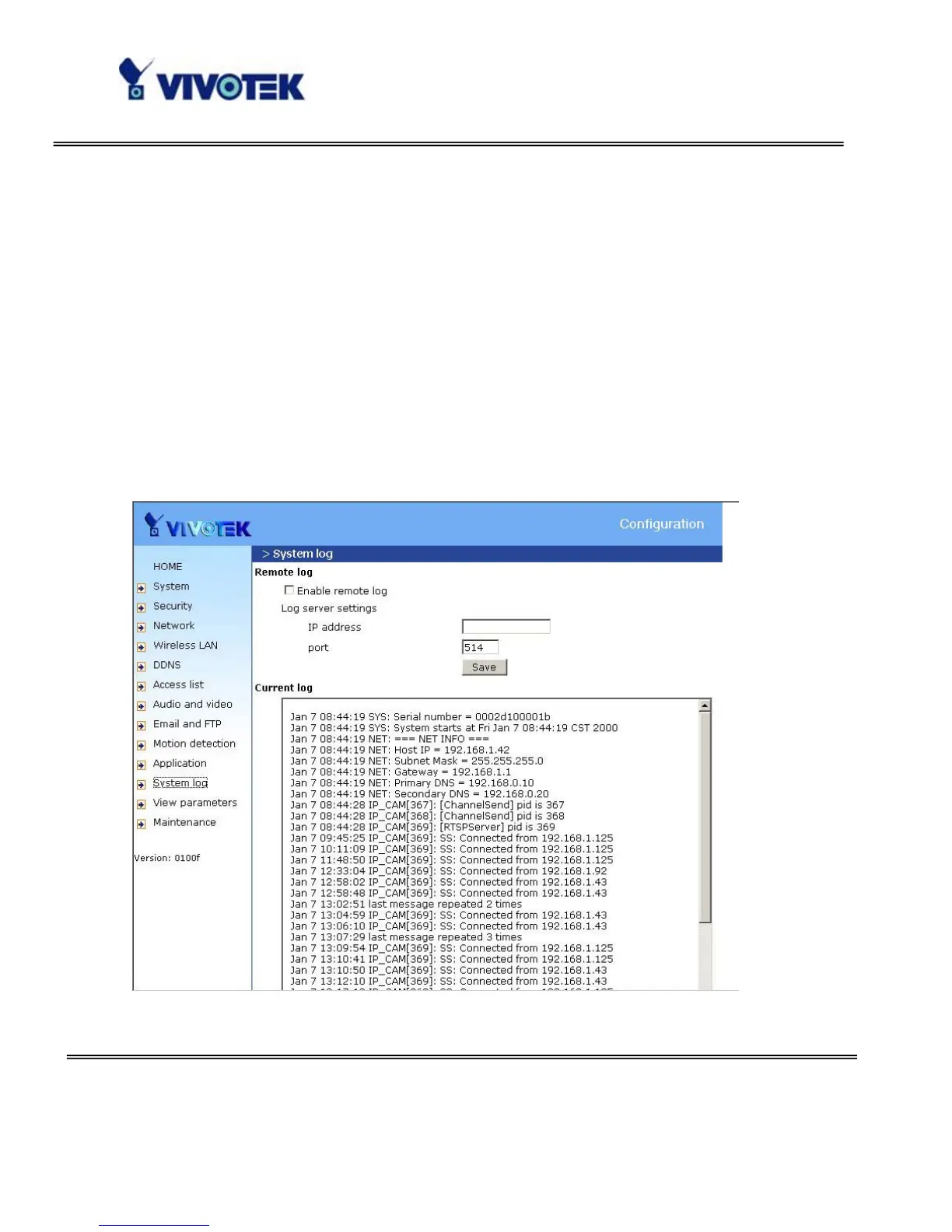 Check “Enable remote log” and input the “IP address” and “port” number of the
