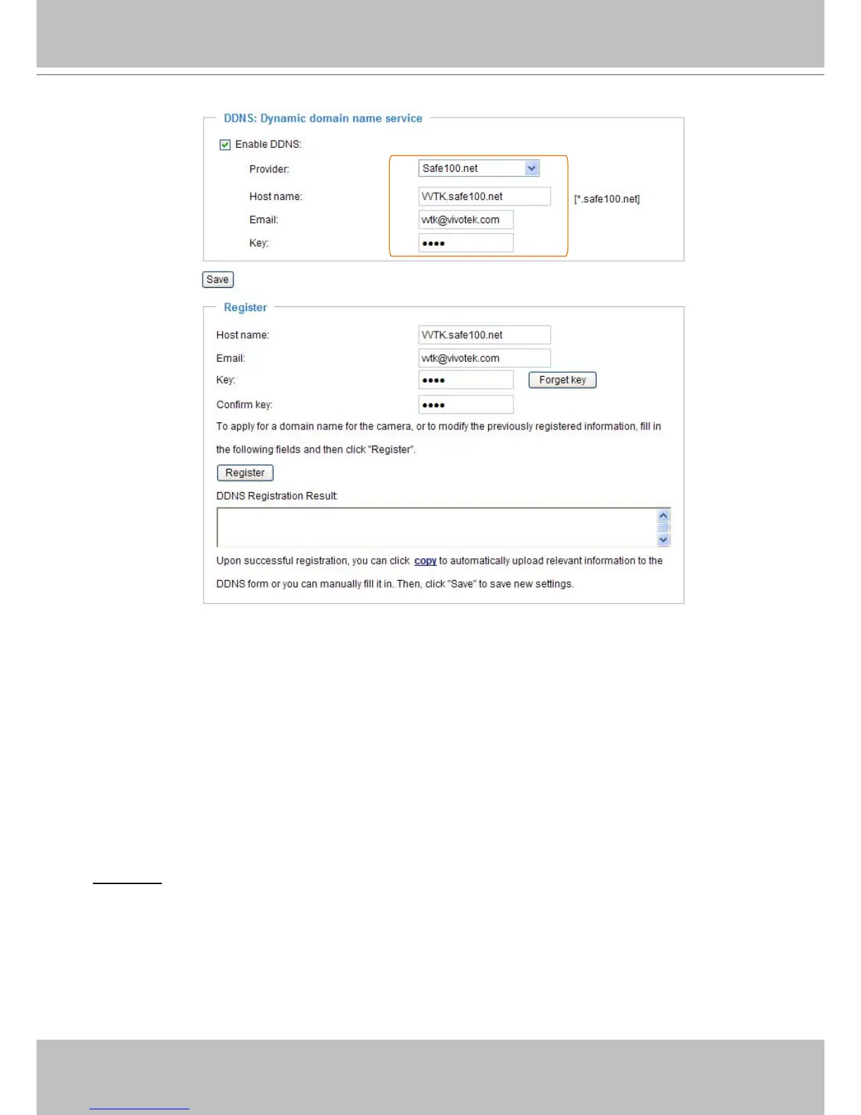 2. In the Register column, ll in the Host name, Email, Key, and Conrm Key; then click Register. After a