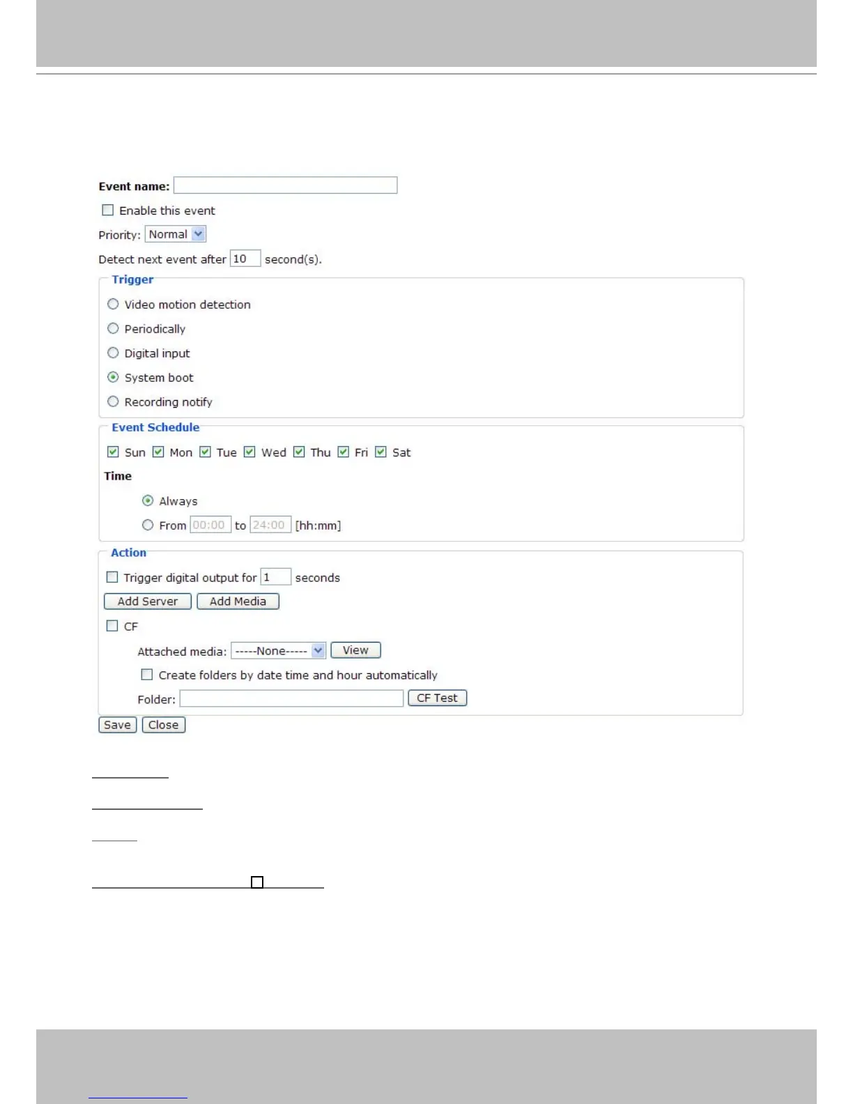 arrange three elements -- Trigger, Schedule, and Action to plot an event� A total of 3 event settings can