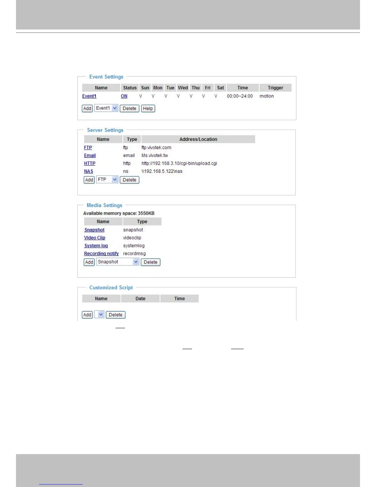 Note that only when the media setting is not being applied to an event setting can it be deleted�