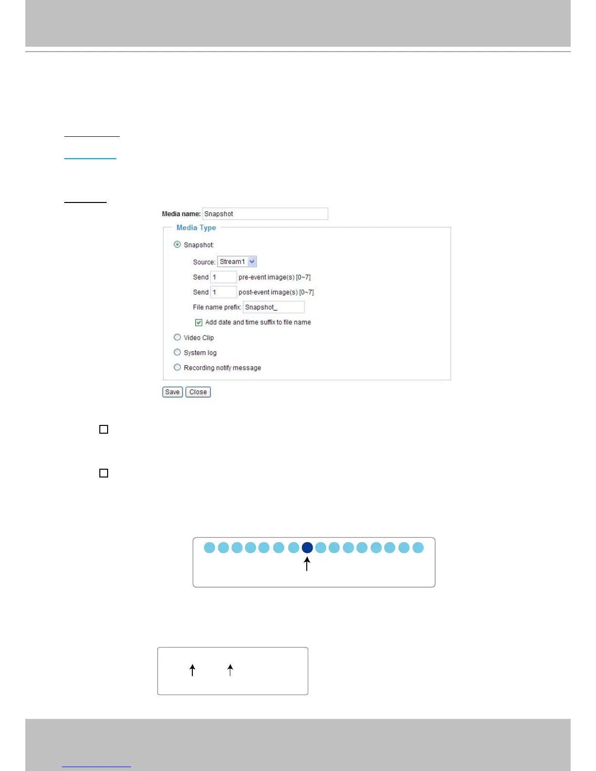 There are three choices of media types available: Snapshot, Video Clip, and System log� Select the item