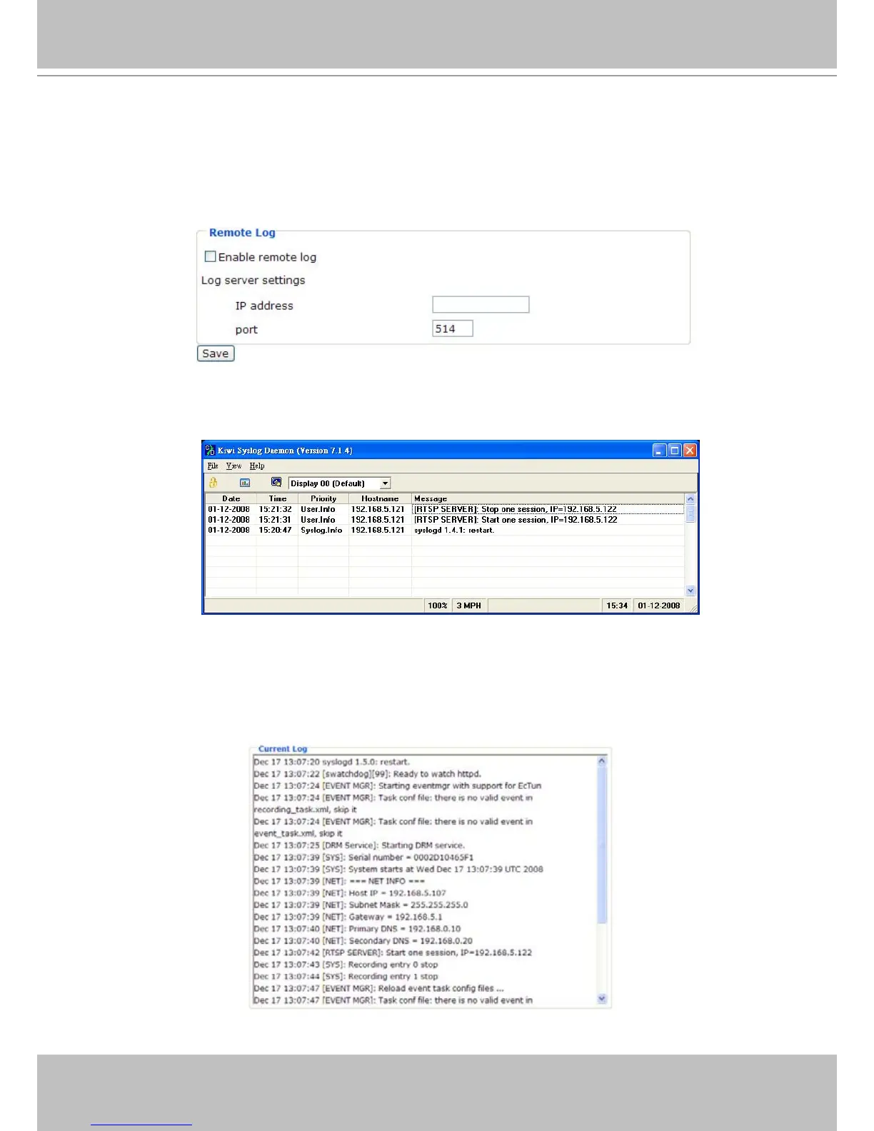 messages from the Network Camera� An example is Kiwi Syslog Daemon� Visit http://www�kiwisyslog�