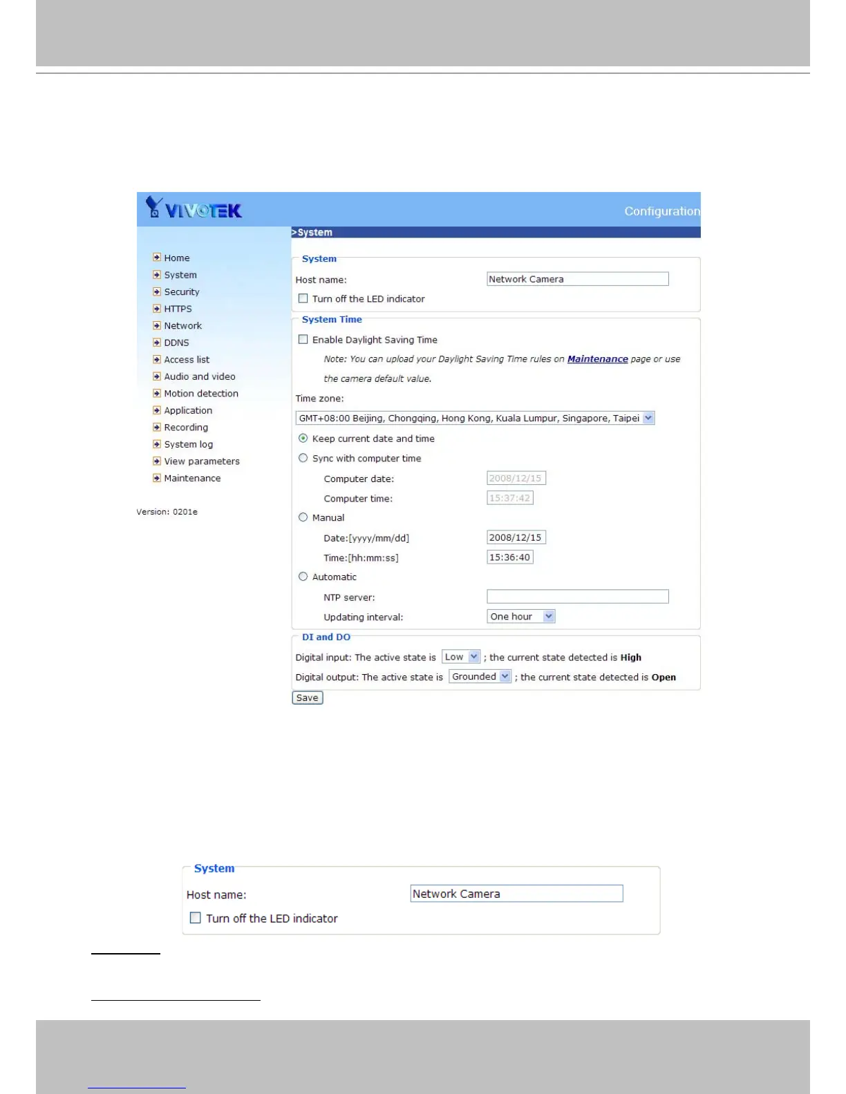 Time and DI and DO� When completed with the settings on this page, click Save on the page