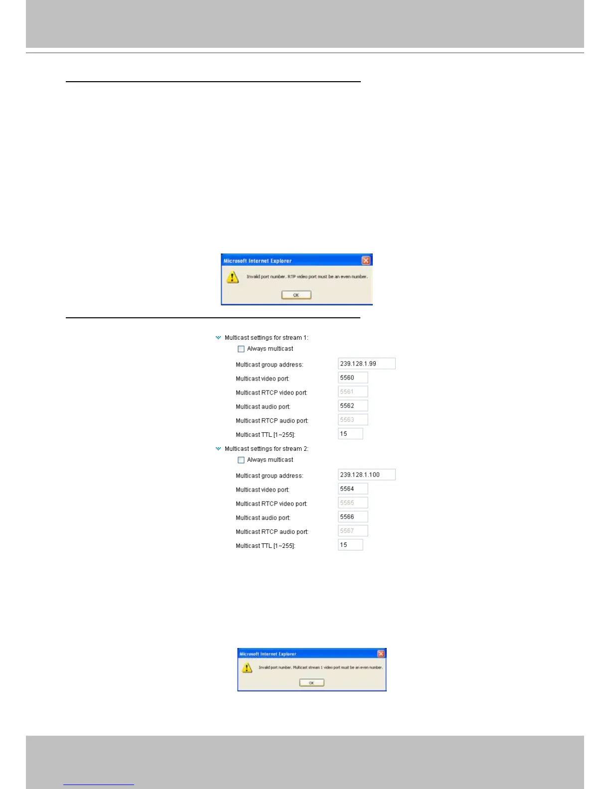 If the multicast RTP video ports are incorrectly assigned, the following warning message will be