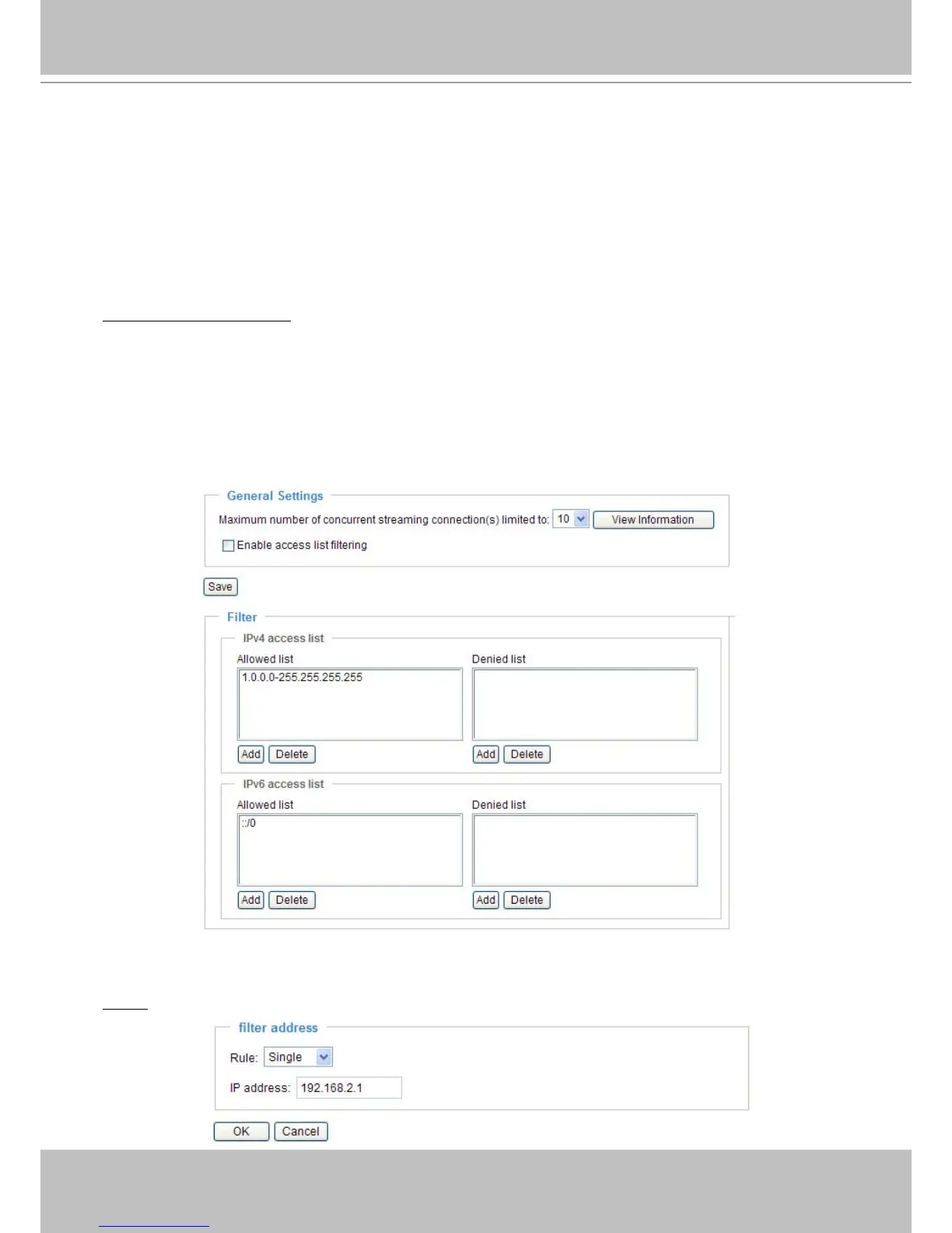 addresses are on the Allowed list and not on the Denied list can access the Network Camera� Please