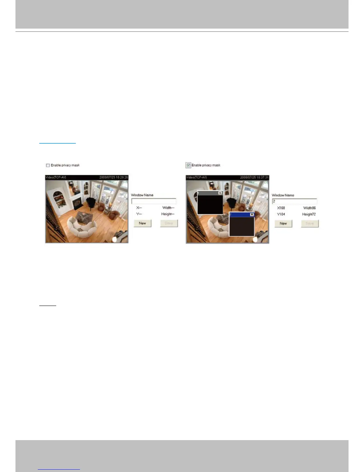 ► Up to 5 privacy mask windows can be set up on the same screen.